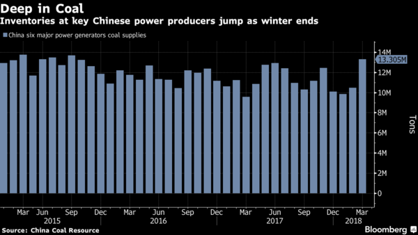 現(xiàn)在,隨著采暖需求緩解,電廠發(fā)現(xiàn)自己煤炭庫存臃腫。中國六大電力公司的煤炭庫存已經(jīng)恢復(fù)到2015年10月以來的最高水平,因當(dāng)局要求北方的煤礦和鐵路在農(nóng)歷新年假期維持運(yùn)營。價(jià)格正在下降,一些分析師預(yù)計(jì),隨著礦山產(chǎn)量和庫存增加,價(jià)格還將進(jìn)一步下降。