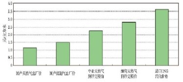 圖1:我國主要不同氣源的天然氣價(jià)格水平差異